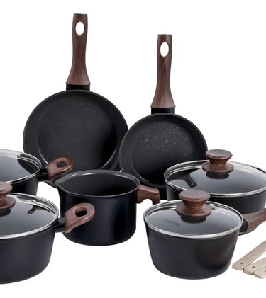 Esse conjunto virou favorito porque entrega exatamente o que a maioria das pessoas busca: panelas bonitas, fáceis de usar e que não grudam. O acabamento em grafite dá um visual sofisticado na cozinha, enquanto o revestimento cerâmico permite cozinhar com menos óleo — perfeito pra quem quer praticidade no dia a dia.